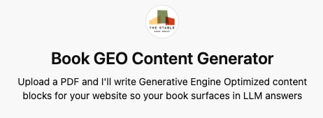 Try out Stable Book Group’s GEO Content Generator: bit.ly/3OkH5lg